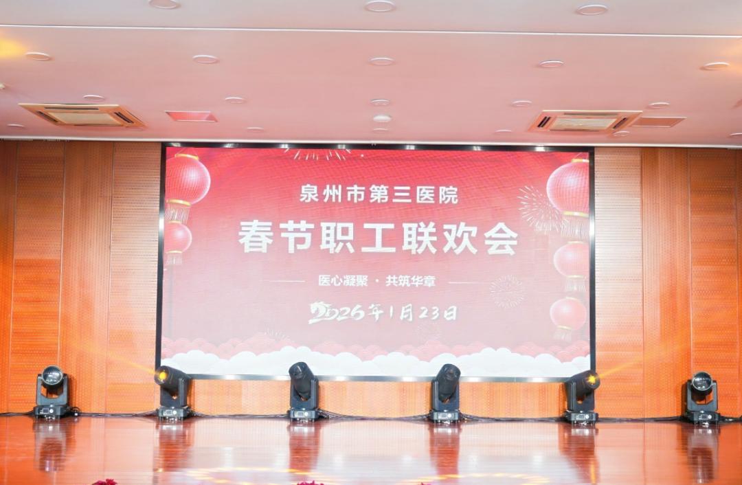 金蛇辞旧岁,骏马迎新春。为丰富职工文化生活,凝聚团队向心力,展现医务工作者精神风貌,1月23晚,泉州市第三医院在门诊5楼学术报告厅举办“医心聚力,共筑华章”2026年春节职工联欢会。院领导、广大干部职工欢聚一堂,共迎新春。
